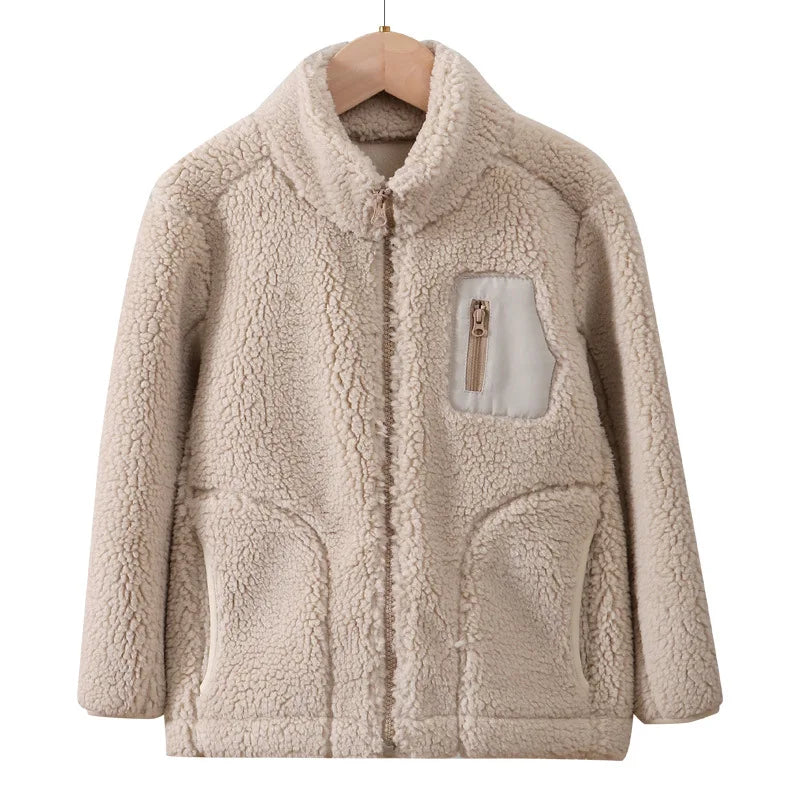 Children's Plush Jacket Warm Winter Cold Weather Gear Snow Windproof Outdoor Outerwear for Kids Casual Boys Girls Tops Clothes