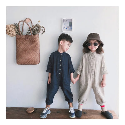 New 2024 Spring Unisex Kids Overalls Cotton Linen Loose Trousers Korean Style Baby Boys Girls Jumpsuits Children Clothes