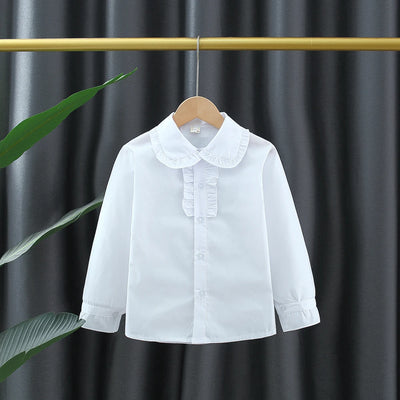 Baby Girl Long Sleeved Shirt, Spring And Autumn New White Petal Collar Children'S Clothing Suitable For 120-170cm Height