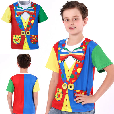 Boys' Clown Costume for Kids Halloween T Shirt Toddler Multicolor Tees Children Carnival Theme Party Cosplay Short Sleeves Tops