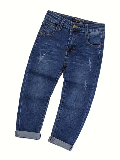 Boys' Slim Fit Casual Jeans - Classic Denim Pants for Spring & Fall, Medium Stretch, Solid Color, Children Fashion Trousers