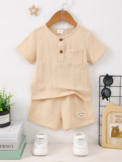 Summer 1-6 Years Old Double Sided Wrinkled Fabric Short Sleeved Casual 2PCS Suit