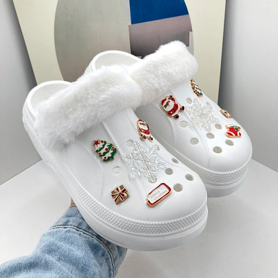 A set of cute Christmas-themed snowflake-shaped decorative accessories and fuzzy heel straps, suitable for Crocs clogs and ideal