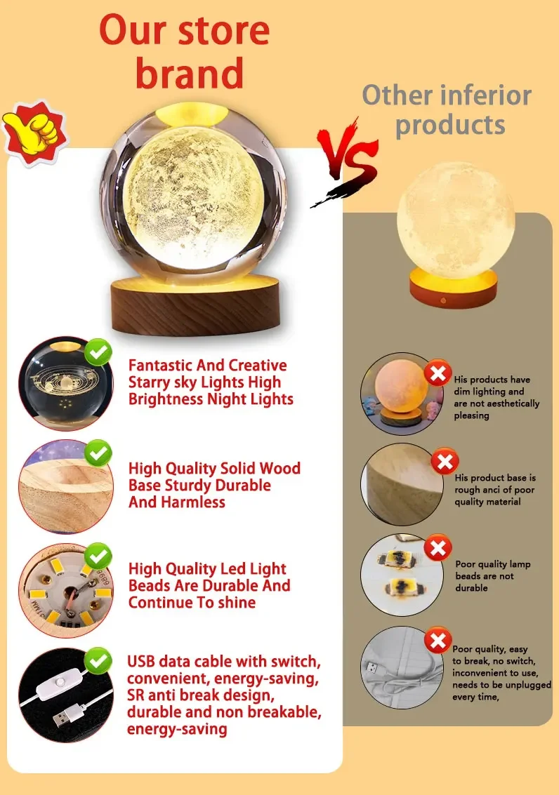 【Packing Contain】(Product List) 1* 6cm Warm light switch base (Other stores do not have switches) 1* Crystal ball 1* Instructions (Other stores do not have instruction manuals)