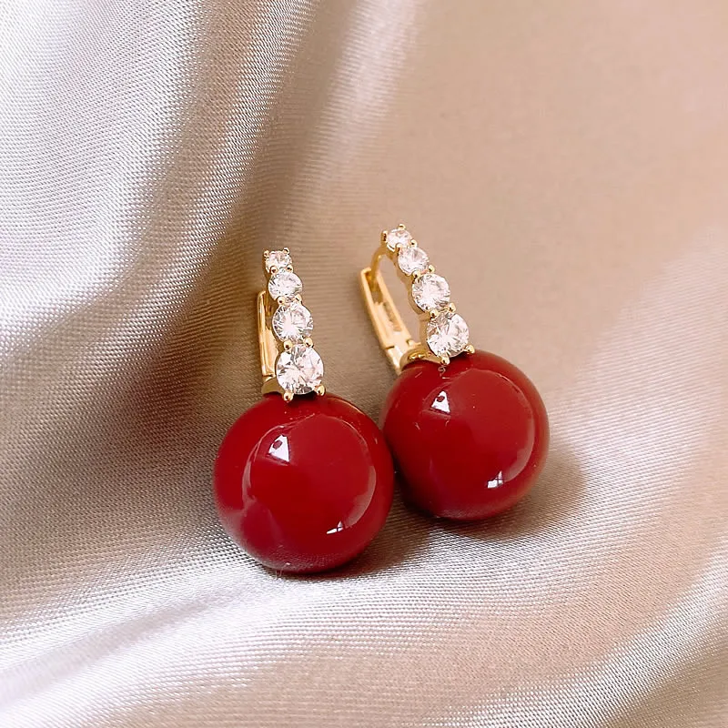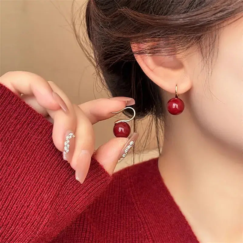 Hoop Earrings French Vintage Red Spot U-shaped Round Drping Oil
