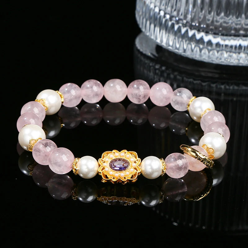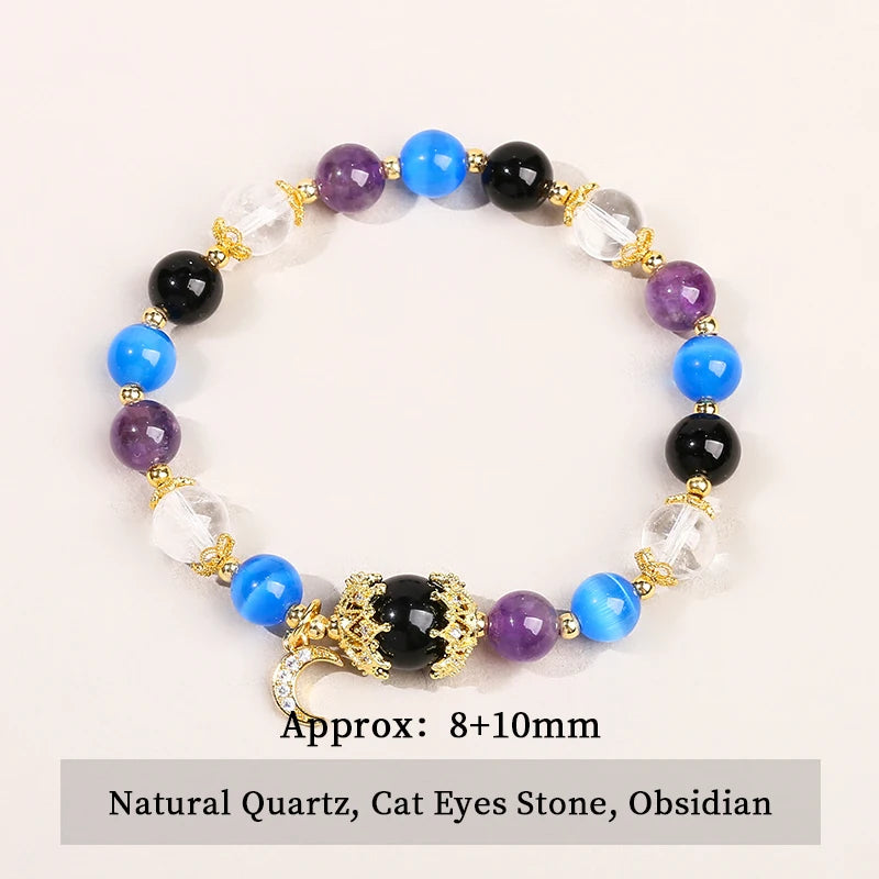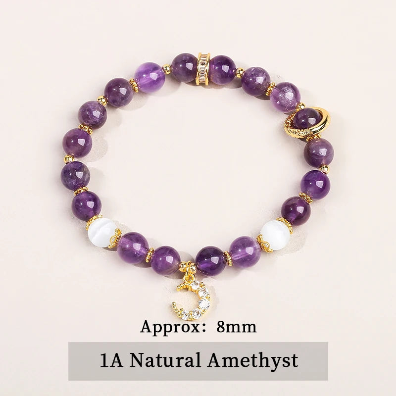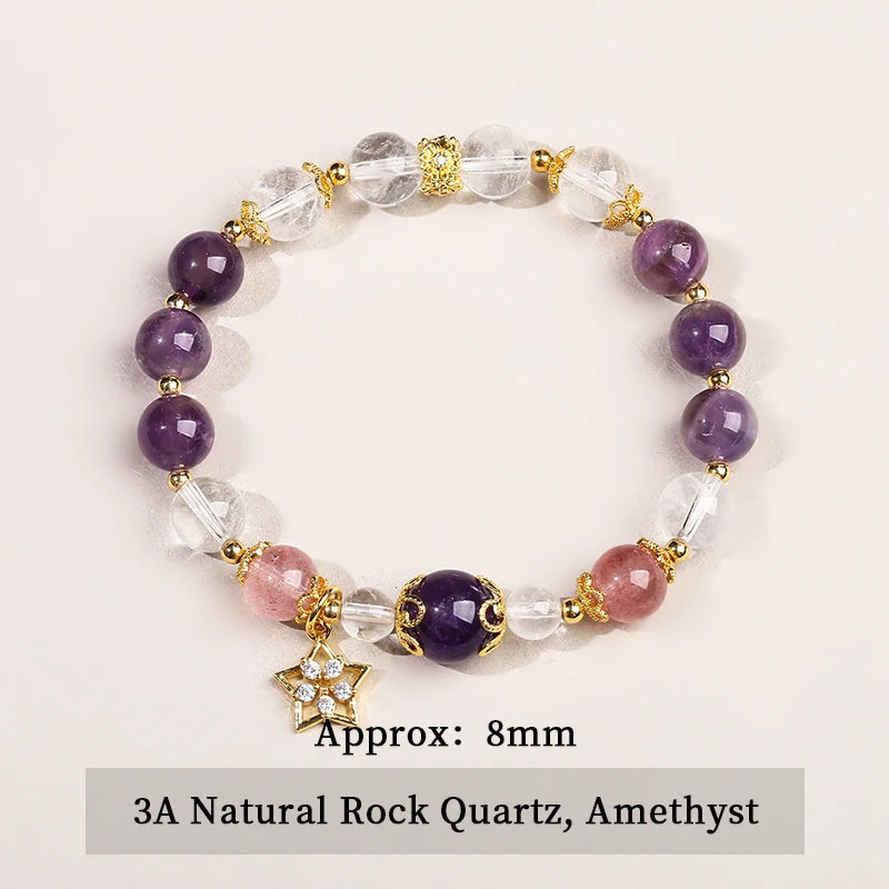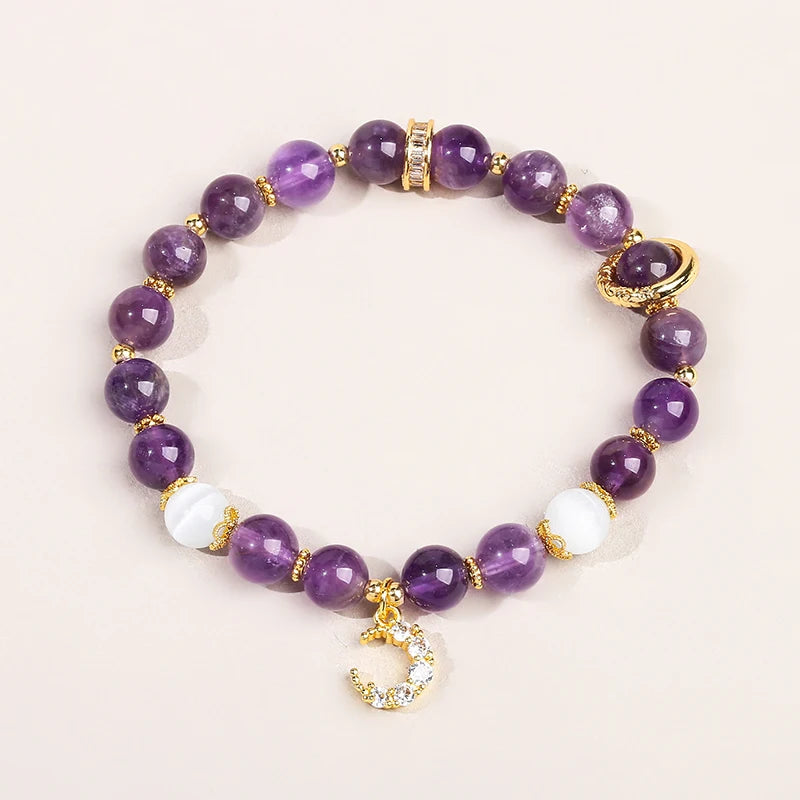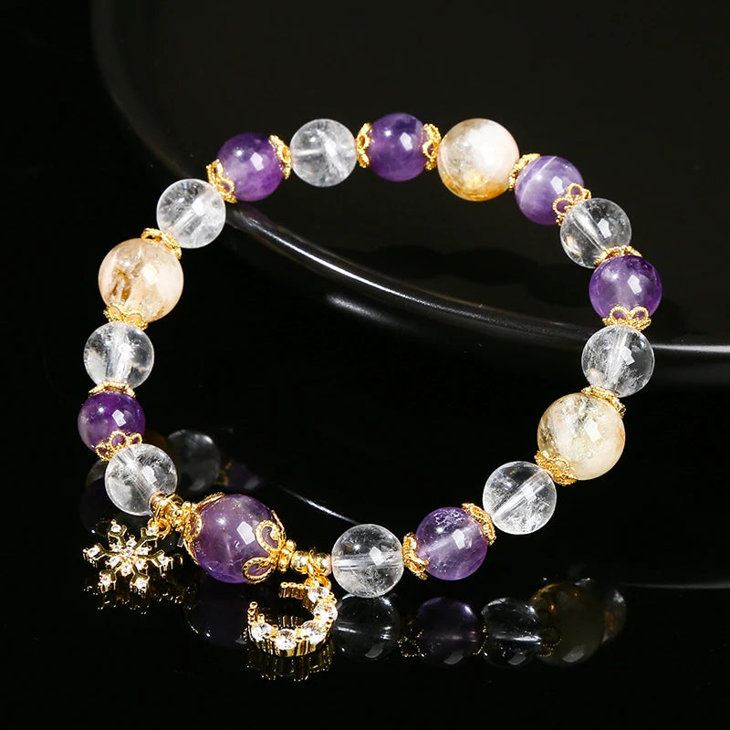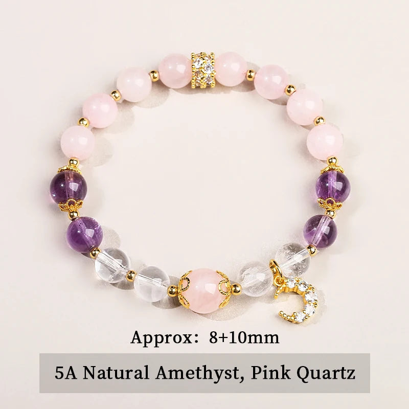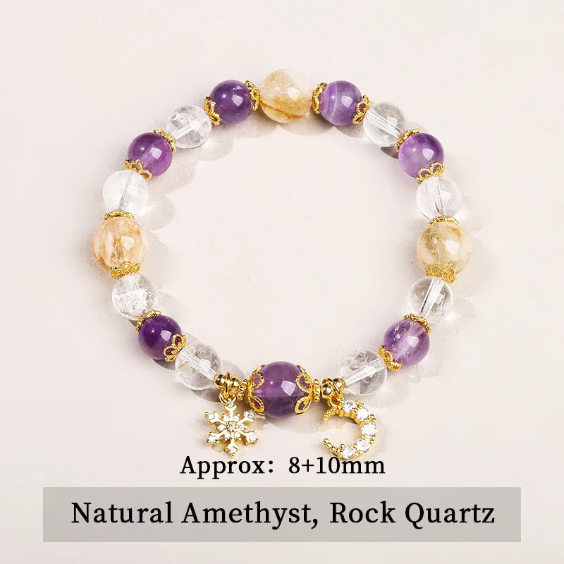 JD Natural Stone Amethyst Rock Quartz Copper Charm Bracelets Women Shiny Zircon Handmade Crystal Bracelets Female Party Gifts