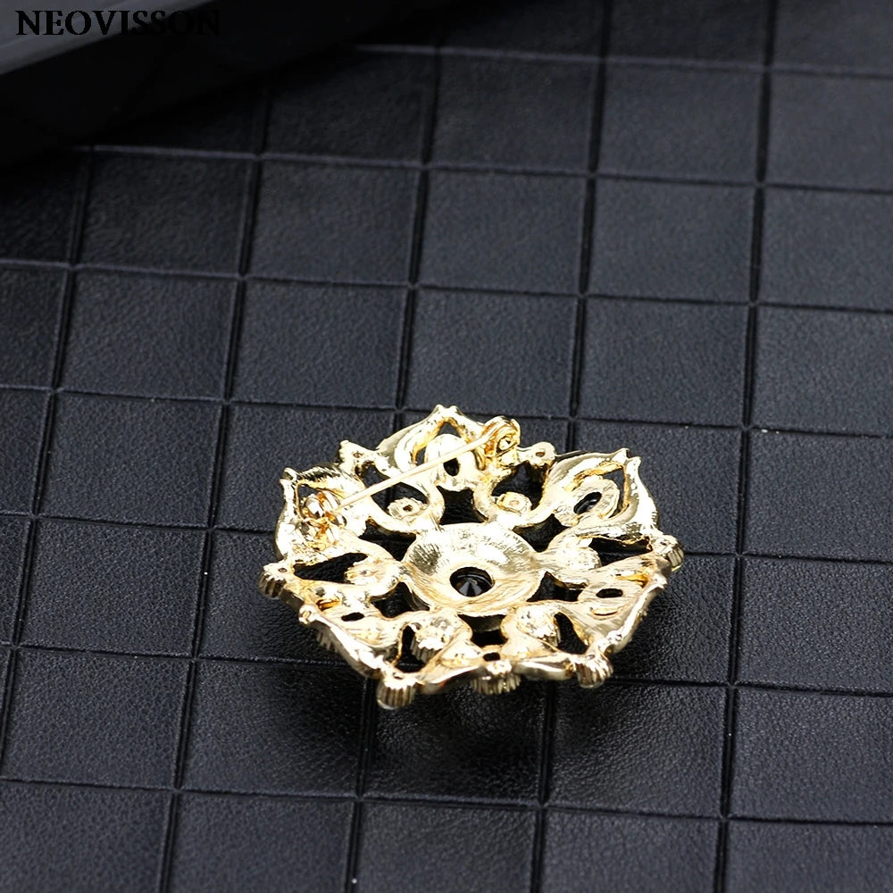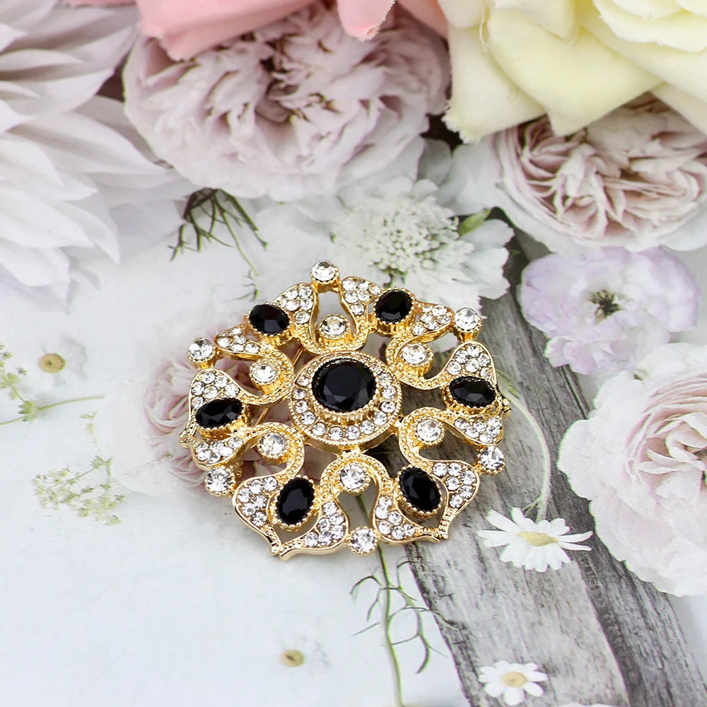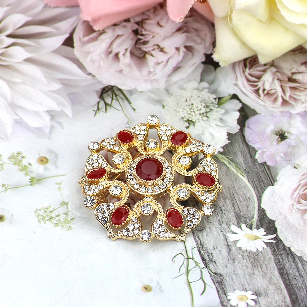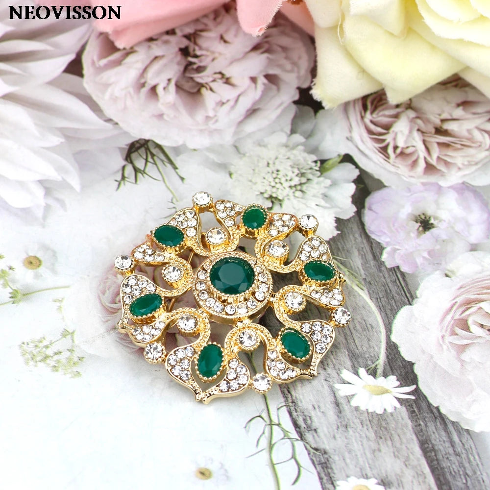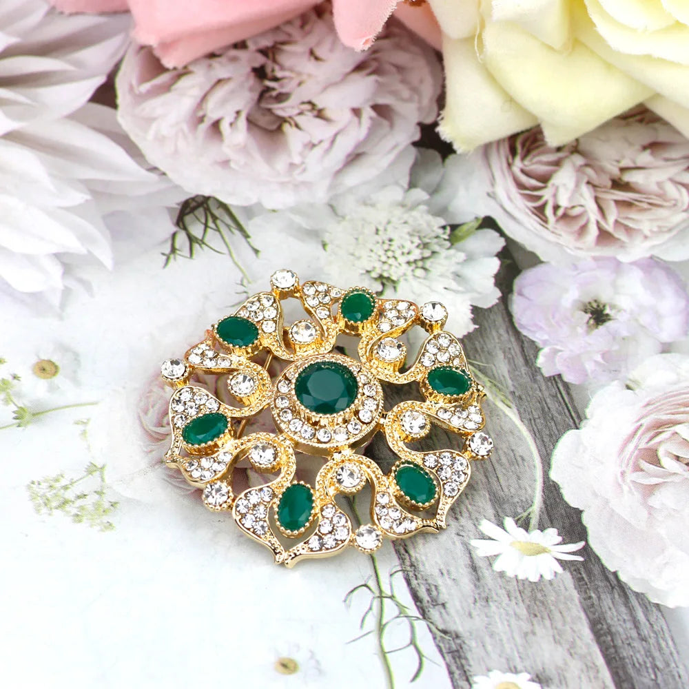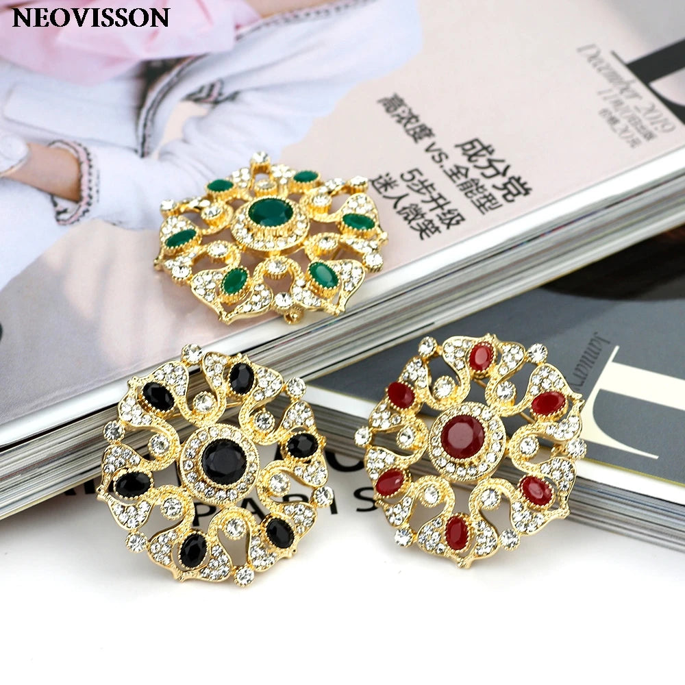 SUNSPICEMS Morocco Gold Color Female Kaftan Brooch Full Crystal Turkish Design Arabic Ethnic Wedding Party Jewelry Holidays Gift