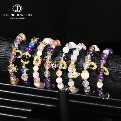 JD Natural Stone Amethyst Rock Quartz Copper Charm Bracelets Women Shiny Zircon Handmade Crystal Bracelets Female Party Gifts