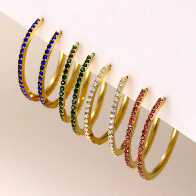 Multi Color Zirconia Hoop Earrings Women's Stainless Steel Gold Plated Round 3 Size Luxury Earrings Ladies Waterproof Jewelry