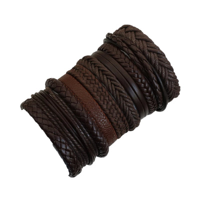 WestBull 10 Pcs/Set Khaki Brown Multilayer Leather Bracelets Men Weave Women Homme Gift Wholesale Jewelry