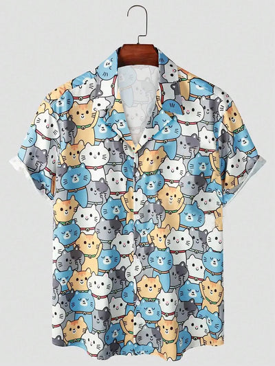 Unisex Fashion Men's Cute Cat Print Casual Daily Wear 3D Printing Short Sleeve Shirt Fashion Hawaiian Shirts For Men Harajuku