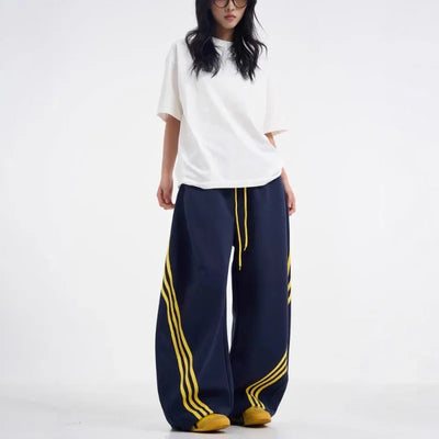 American Style Color Block Men's Casual Pants Loose Fit Wide Leg Trousers Ins Trendy Design Sensibility Sports Pants