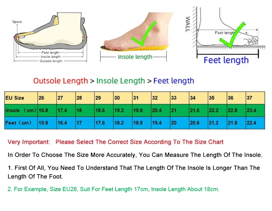 2. For children whose feet are not yet fully developed, we recommend leaving approximately 1cm of toe space between foot length and inner length.