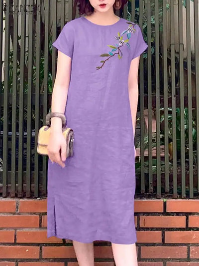 Fashion Summer Dress ZANZEA Women Short Sleeve Floral Vestidos Robe Femme Casual Loose Sundress Elegant OL Work Midi Dresses