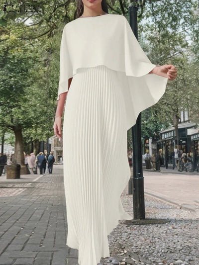 Women Solid Party Work Dress Sets ZANZEA Spring Fashion Poncho Blouse Pleated Sundress 2pcs Outfits Elegant Matching Sets 2025