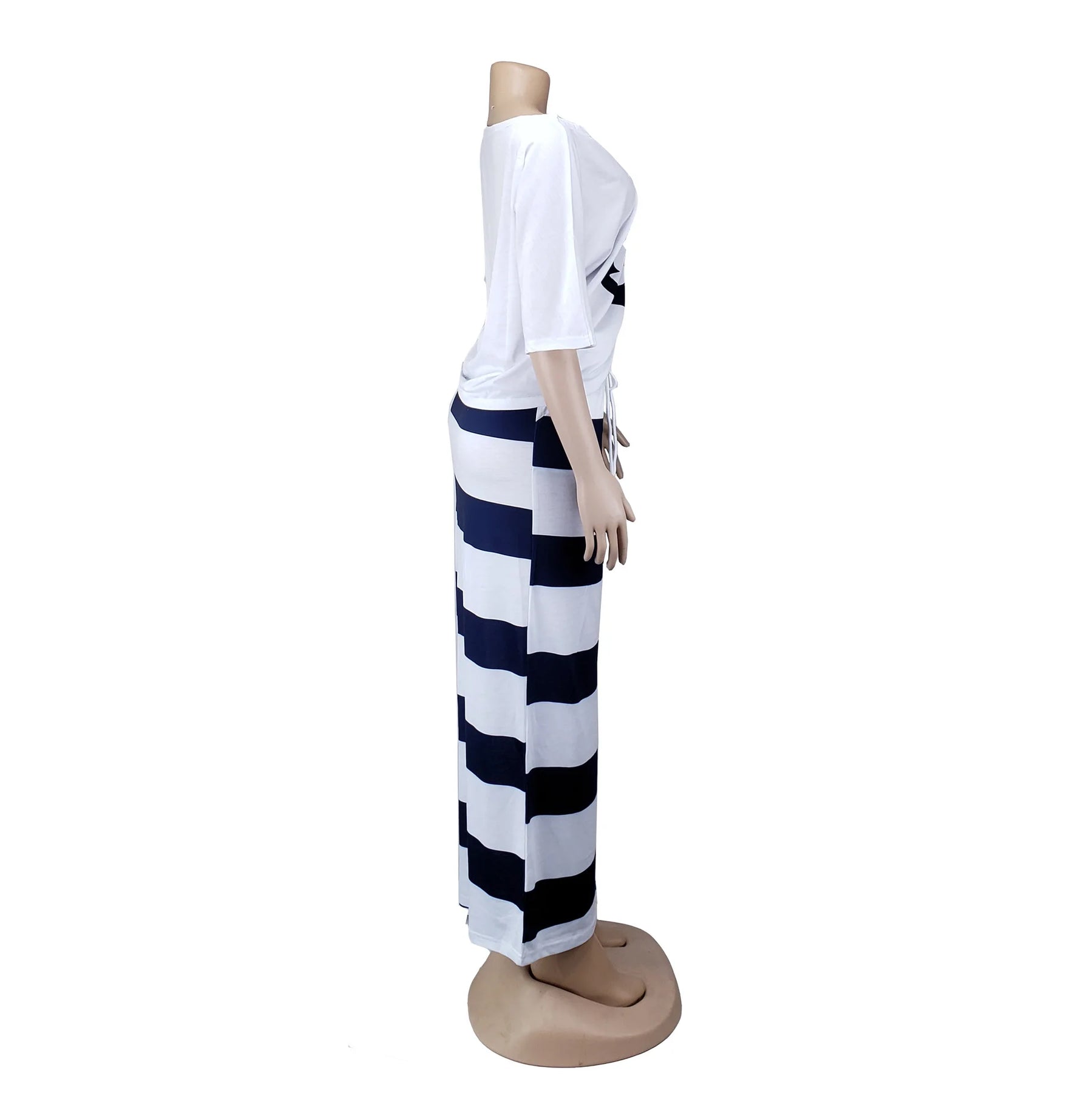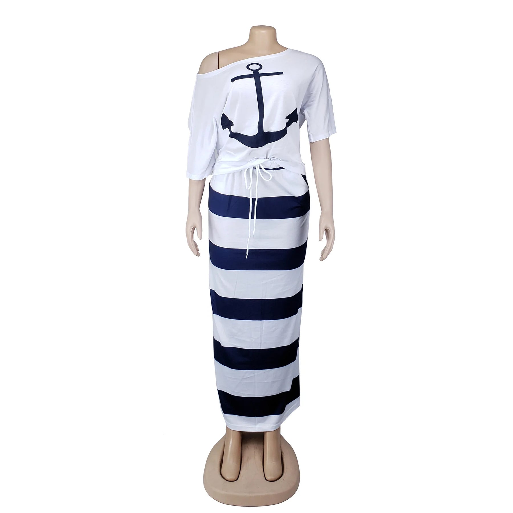 Elegant Women's Casual Boat Anchor Print Short Sleeve T-shirt+Skirt Two Piece Set Fashion Summer Tracksuit Skirts Sets For Women