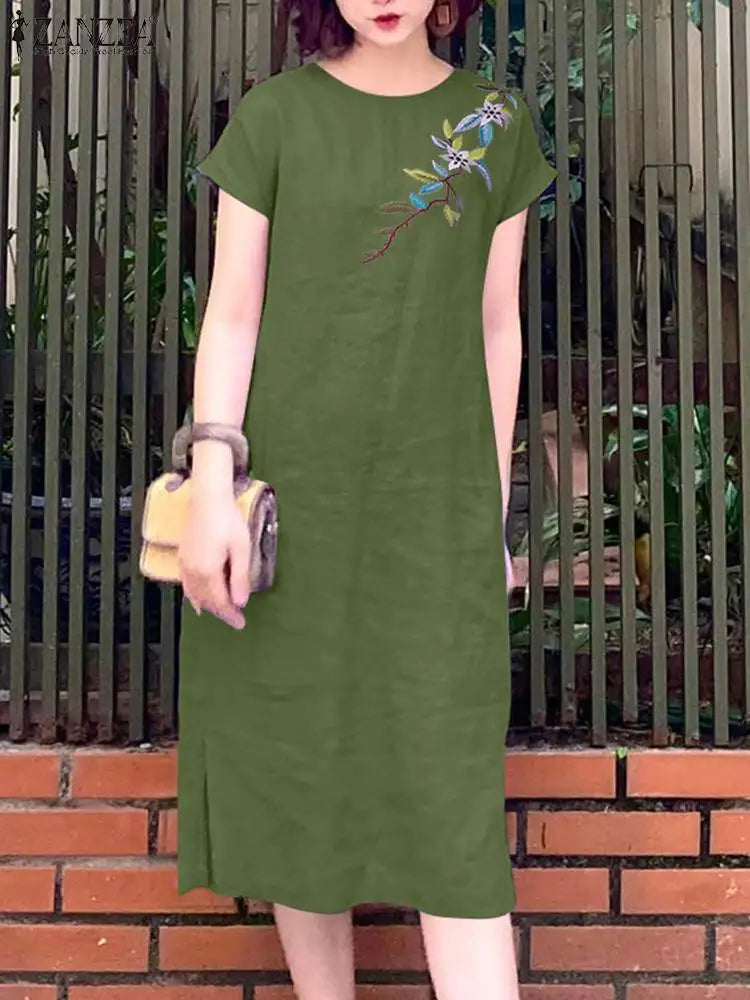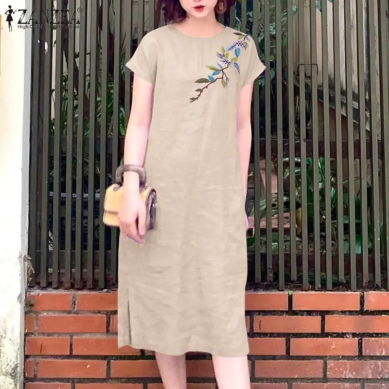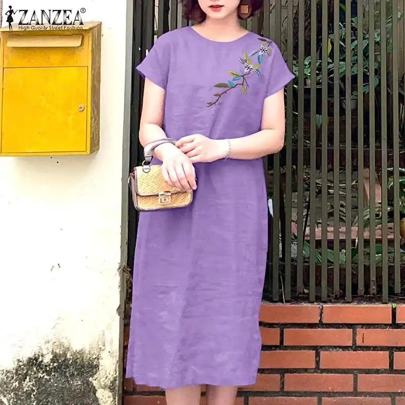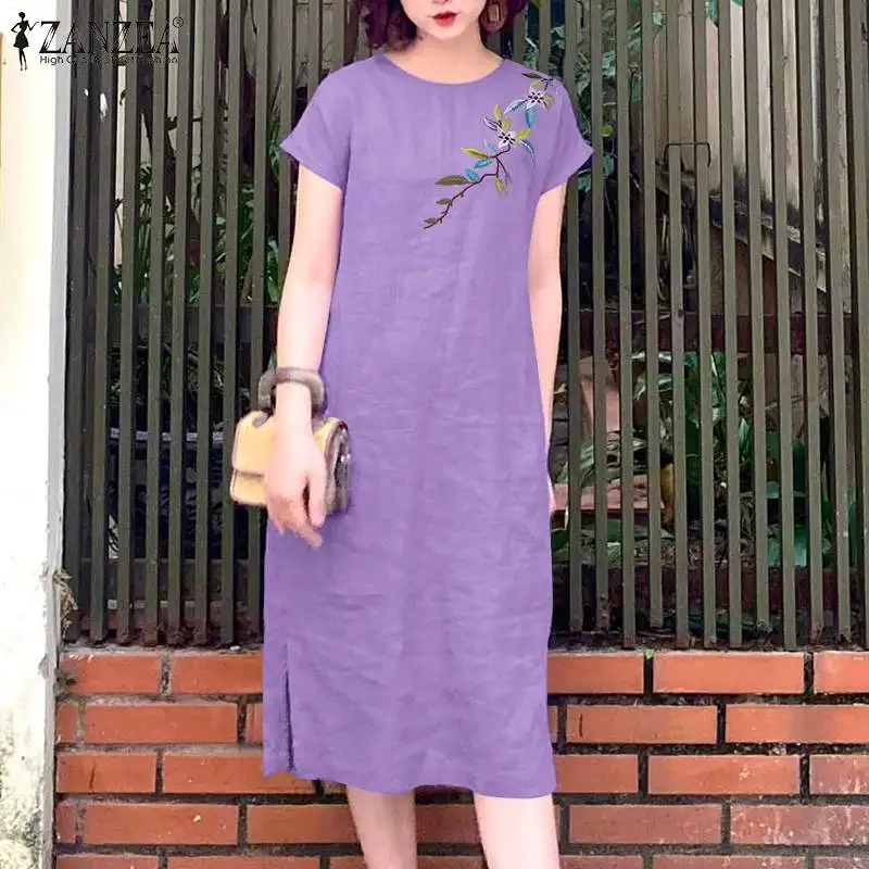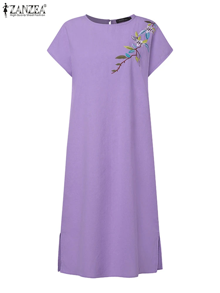 | Package included:1 Dress Material:100% Cotton Colors:Beige,Dark Green,Purple Sleeve Length:Short Sleeve Neckline:O-Neck Pattern:Floral embroidery Length:Mid-Calf Length Buckle chain:Buttons on the back Thickness:Thin Style:Leisure,Bohemian,Retro,Europe Season:Spring,Summer,Autumn,Winter Occasion:Family,Party,Beach,Wedding,Holiday,Employment Label: Yes Attentions: 1.The Real Object May Exist Slightly Colors Differences Compared To Images As Different Computers Display.Caution If Minding,Thanks. 2.There Might Be A Manual Measuring 1-3 cm Error.Sorry For Any Inconvenience. 3.Please Prevail On Real Item, Model Images For Reference Only. 4.Attention!!!Please check the size chart carefully before placing the order.