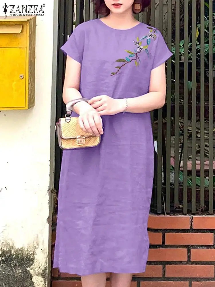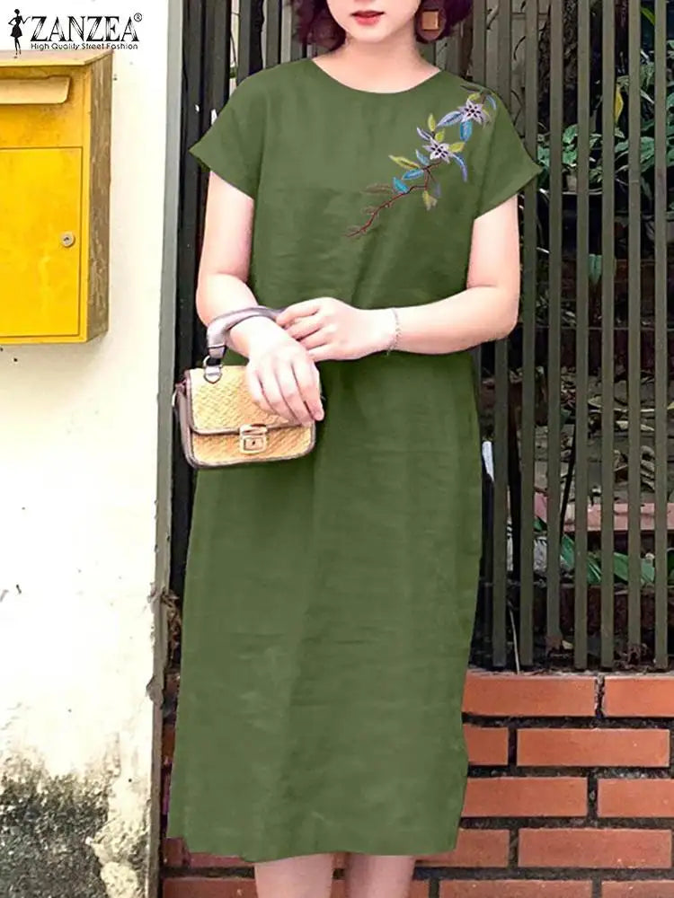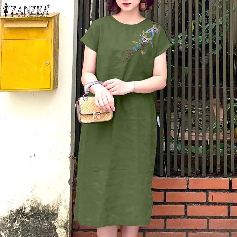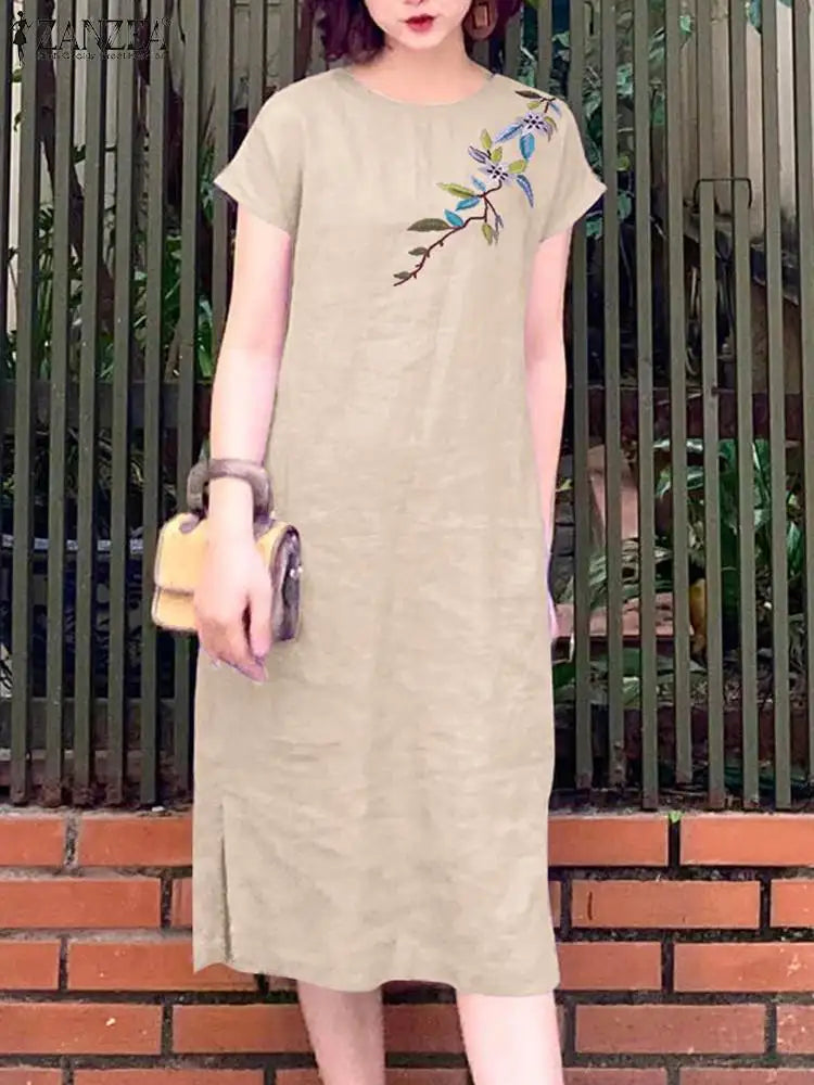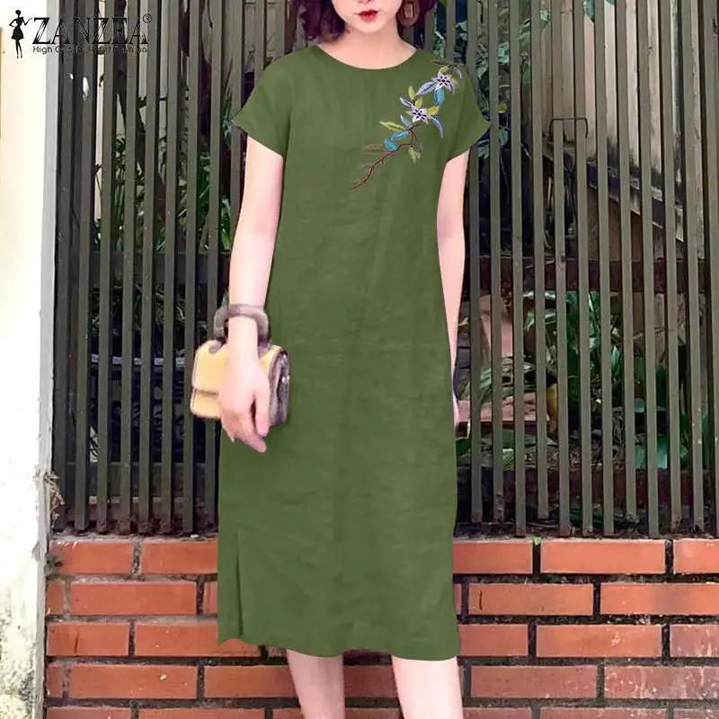 | Package included:1 Dress Material:100% Cotton Colors:Beige,Dark Green,Purple Sleeve Length:Short Sleeve Neckline:O-Neck Pattern:Floral embroidery Length:Mid-Calf Length Buckle chain:Buttons on the back Thickness:Thin Style:Leisure,Bohemian,Retro,Europe Season:Spring,Summer,Autumn,Winter Occasion:Family,Party,Beach,Wedding,Holiday,Employment Label: Yes Attentions: 1.The Real Object May Exist Slightly Colors Differences Compared To Images As Different Computers Display.Caution If Minding,Thanks. 2.There Might Be A Manual Measuring 1-3 cm Error.Sorry For Any Inconvenience. 3.Please Prevail On Real Item, Model Images For Reference Only. 4.Attention!!!Please check the size chart carefully before placing the order.